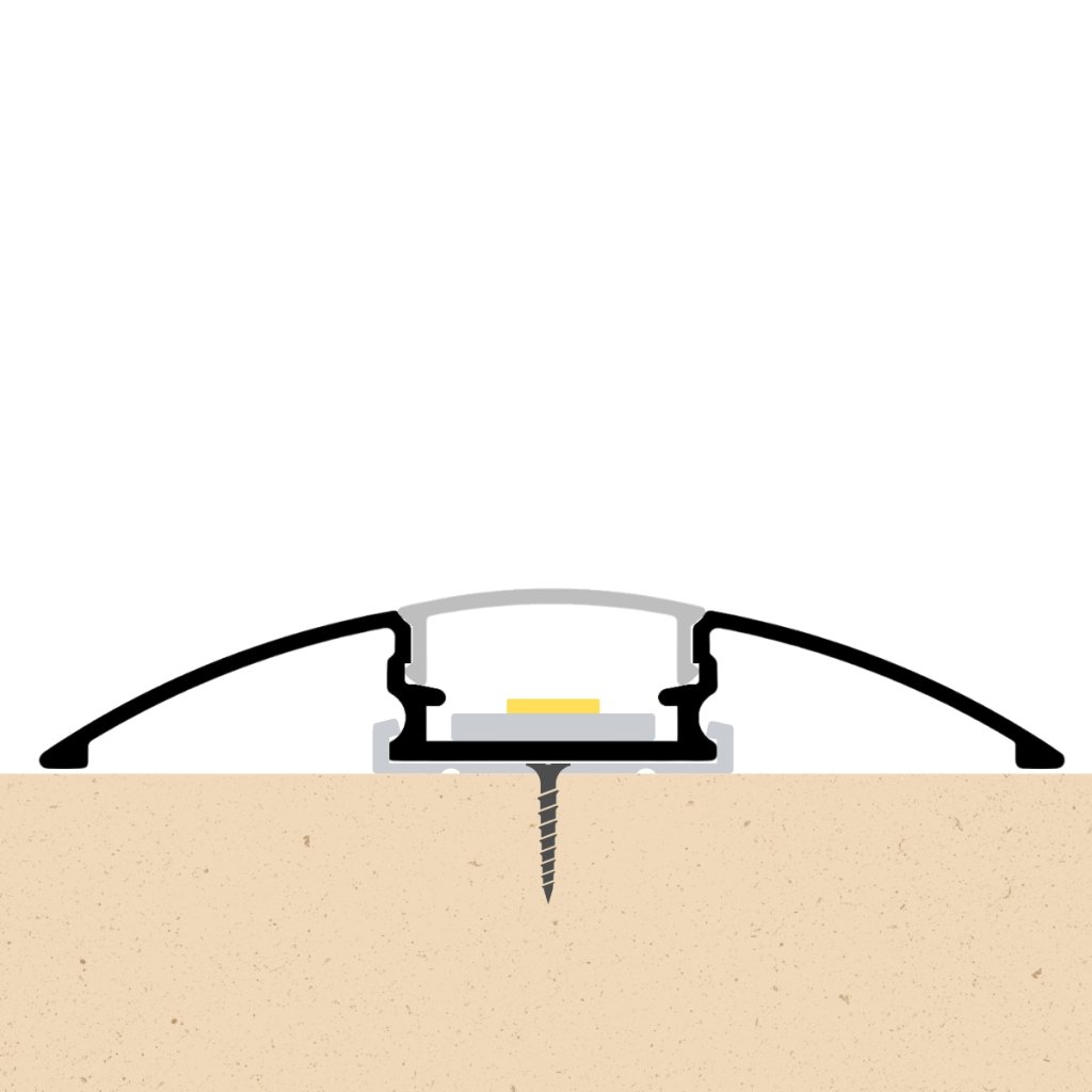 The Surface 4 profile can be installed using mounting clips, screwed directly with self-tapping screws, or glued to the surface with suitable adhesive. This flexibility allows for quick and secure installation on various materials such as wood, drywall, or metal.