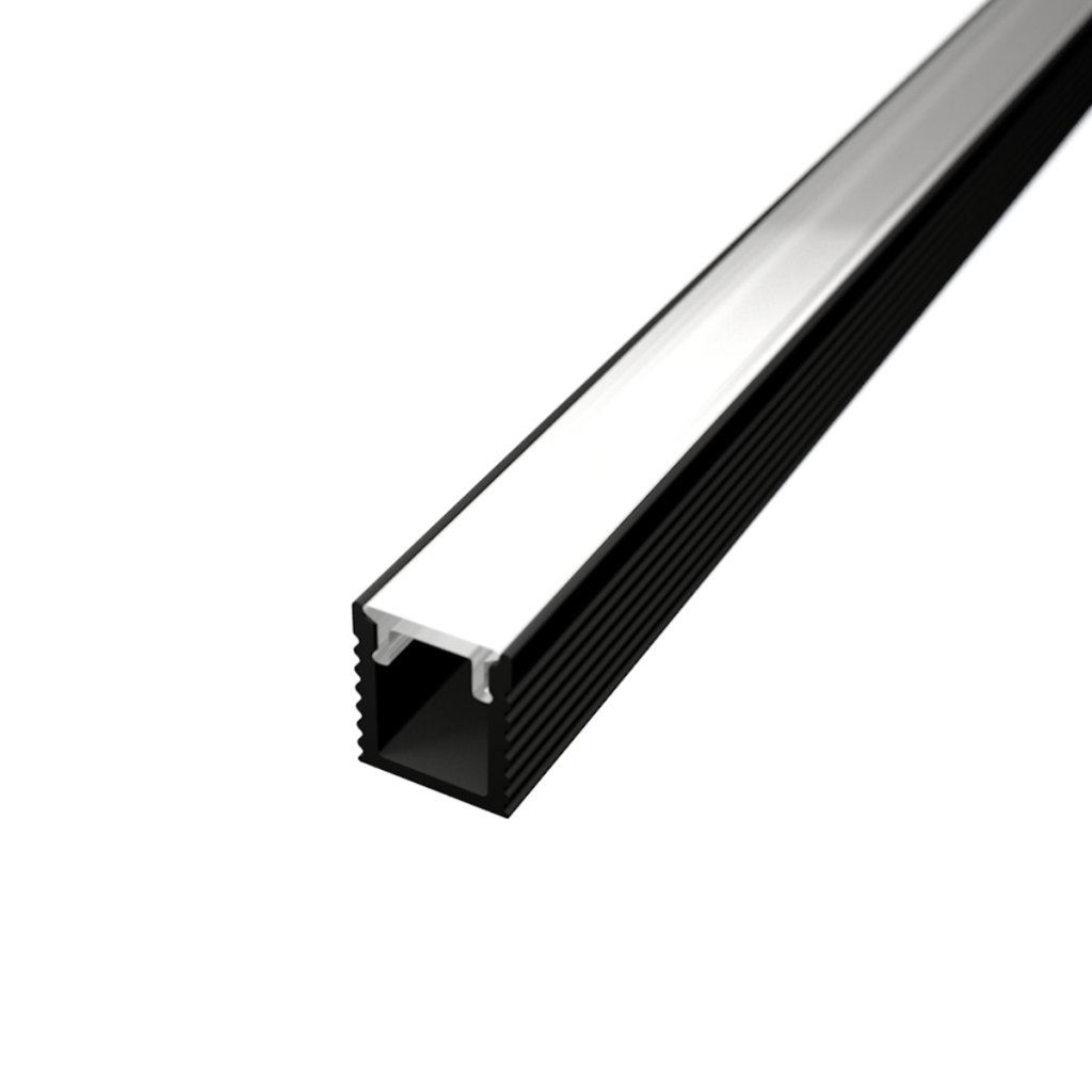 The Slim SURFACE is an ultra-narrow aluminum LED profile with a black anodized finish, designed for LED strips up to 5 mm wide. With compact dimensions of 7.8 × 9 mm, it is ideal for both surface mounting and recessed installation — perfect for furniture, 3D slats, or decorative elements. Its sleek appearance, effective heat dissipation, and compatibility with milky, clear, and black diffusers make it an excellent choice for subtle and stylish lighting applications.