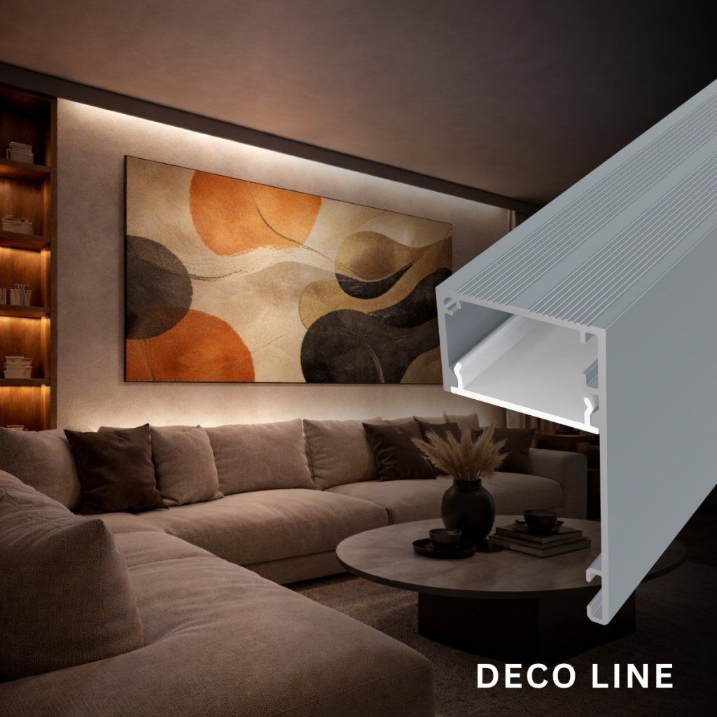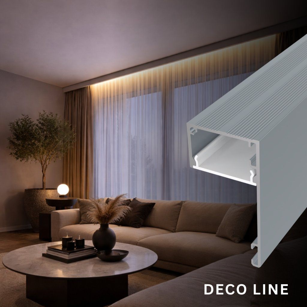 LED profile DECO LINE is an elegant solution for creating subtle indirect lighting that adds depth and visual lightness to an interior. It is designed so that the light appears natural and unobtrusive, without visible technical elements.