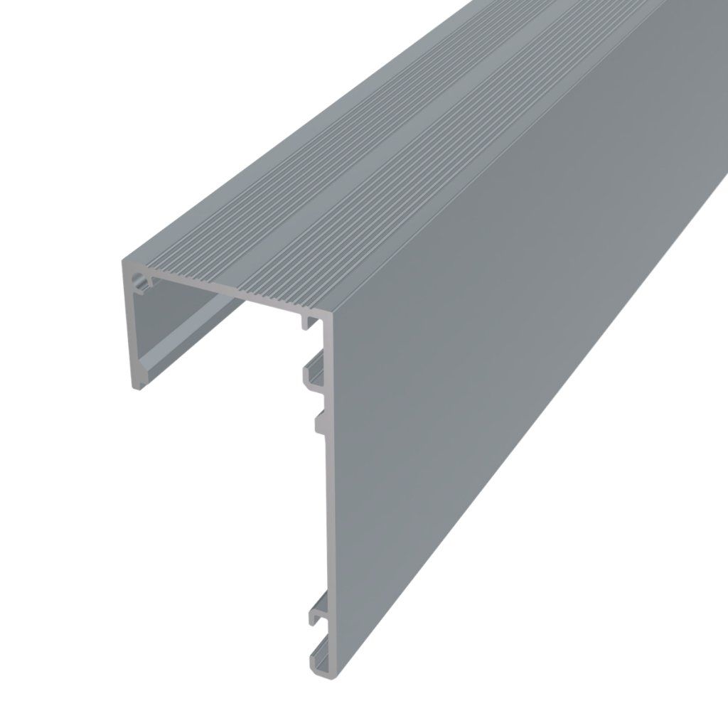 The profile is mounted directly to the ceiling using wall plugs. It is pre-drilled and mechanically fixed with screws to ensure a secure and stable installation. Alternatively, the profile can be installed using suitable mounting adhesive, allowing for a fast and clean installation without drilling.