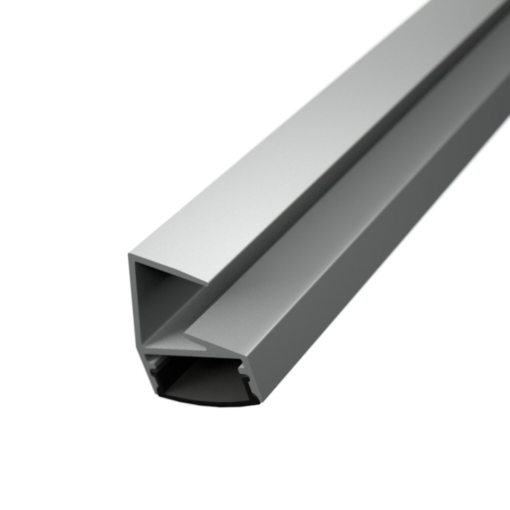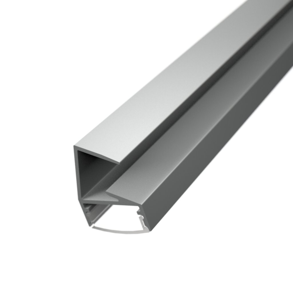 The profile emits light at a 20° downward angle, enhancing visibility and presentation of displayed items without causing glare. Made from high-quality anodized aluminum, it ensures efficient heat dissipation and accommodates LED strips up to 14 mm wide. Available diffuser options include milky, clear, and prismatic – each creating a distinct lighting effect tailored to your needs.