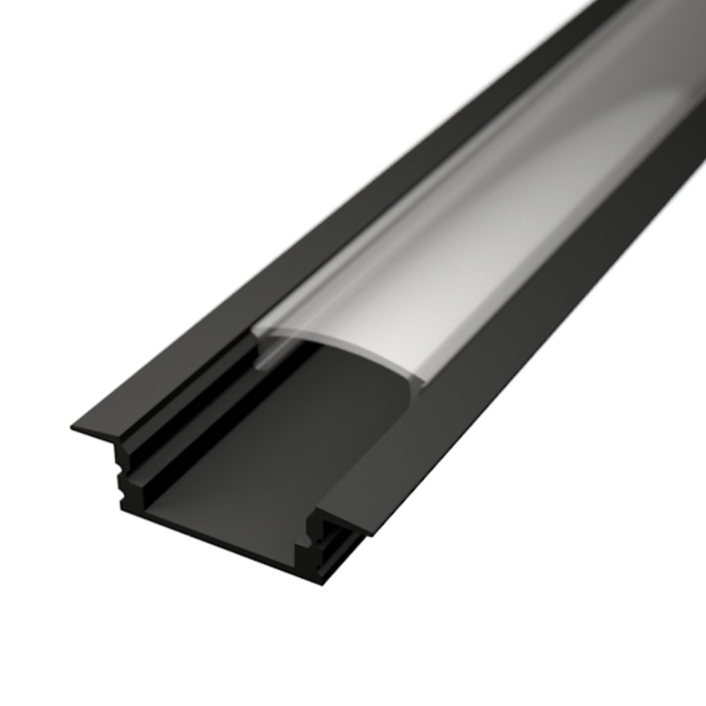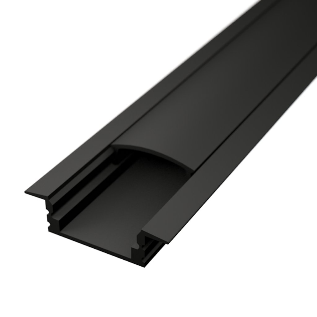 The Recessed 1 Black aluminum profile is a flush-mounted LED profile designed for modern interiors that demand elegance and precision. Its black anodized surface adds a refined, bold aesthetic while ensuring durability and effective heat dissipation. Suitable for LED strips up to 12 mm wide, it’s available with milky, clear, black, prismatic milky, and prismatic clear diffusers, allowing flexible light diffusion options for any project.