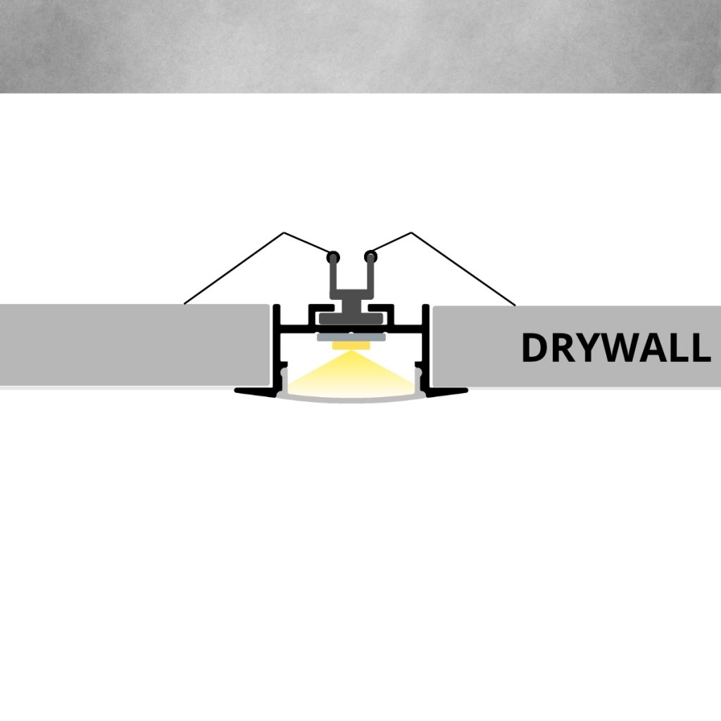 Secure an aluminum profile effortlessly with a specialized clip system designed for drywall walls or ceilings. This easy-to-install solution offers a strong and reliable attachment, ensuring a professional and polished appearance.