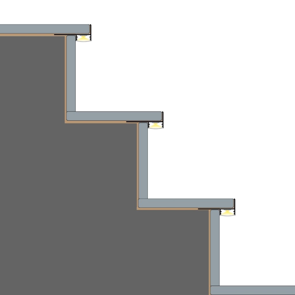 The TILE-EDGE profile is ideal for creating subtle and elegant lighting on stairs. It is most often used as front-edge illumination on tiled steps, providing under-step lighting in residential, commercial, or hospitality interiors. Thanks to its ability to integrate seamlessly under tile finishes, it enhances both safety and design. It is also suitable for use with motion sensors for automatic illumination and works perfectly in minimalist spaces where integrated lighting solutions are preferred.
