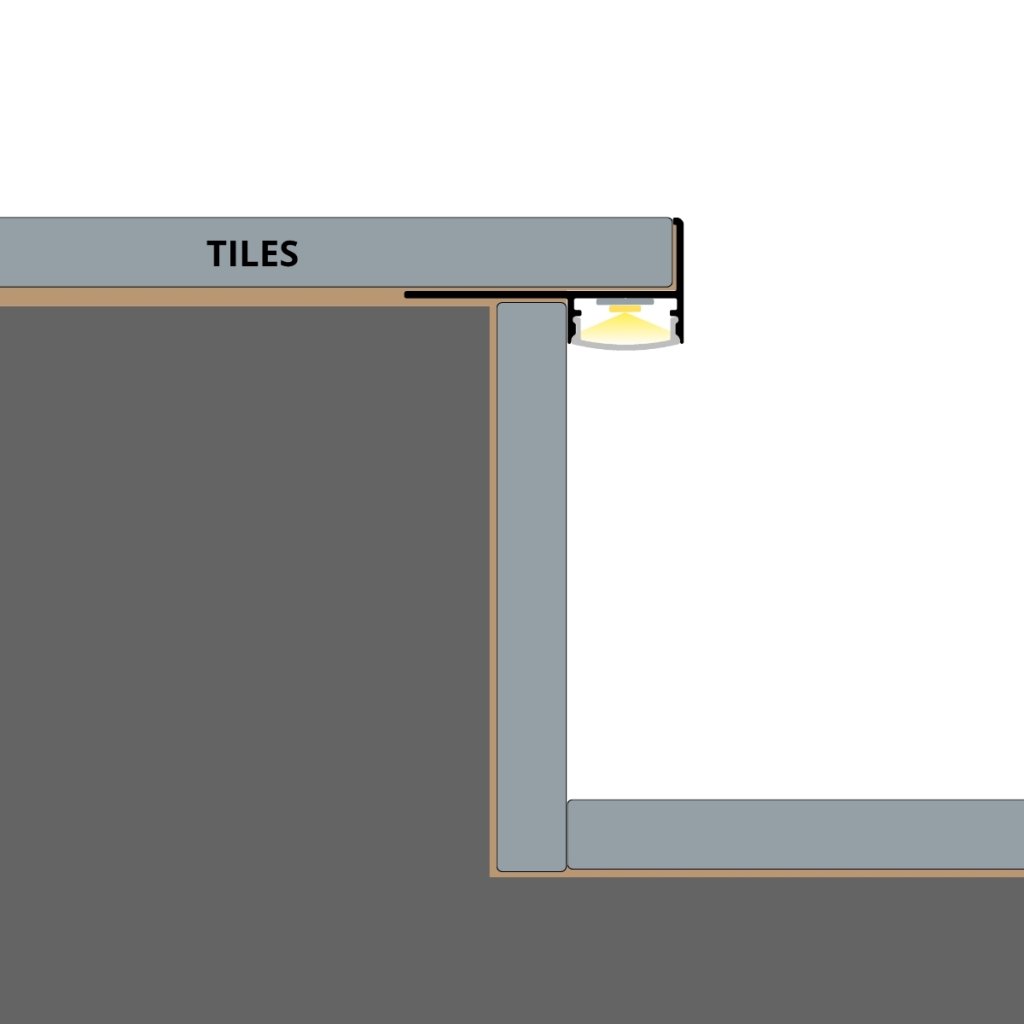 The TILE-EDGE profile creates a clean, illuminated stair edge without disrupting the design. It blends seamlessly with the tile while enhancing both the shape and safety of the staircase.Compatible diffusers