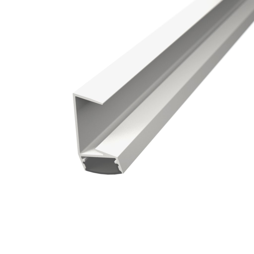The profile emits light at a 20° downward angle, providing soft, targeted illumination of the area beneath the shelf while maintaining a modern, refined look. Made from high-quality white painted aluminum, it ensures efficient heat dissipation and accommodates LED strips up to 14 mm wide. Diffuser options include milky, clear, and prismatic – each delivering a distinct light effect to suit various applications.