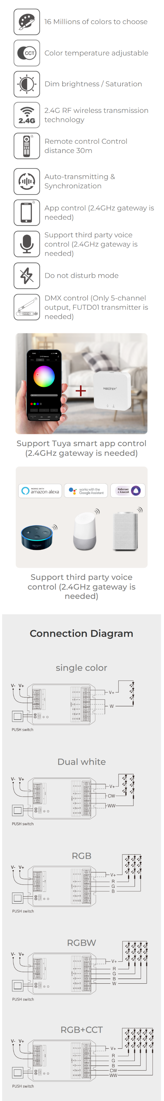 | Colour: | Single, RGB, RGB-W, Dual White (CCT), RGB+Dual WhIte (CCT) |